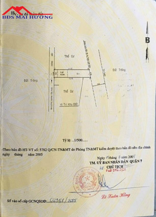 - Địa chỉ: Bán Đất hẻm xe tải thông ra khu dân cư Savimex Ngay sau chợ Phú Thuận Quận 7. Dt: 4,5x22 = 98m2. Giá 5,6 tỷ tt