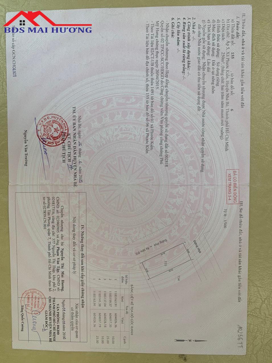 – Dt: 10×25=250m2. Đất vuông vắn, thổ cư 100%.