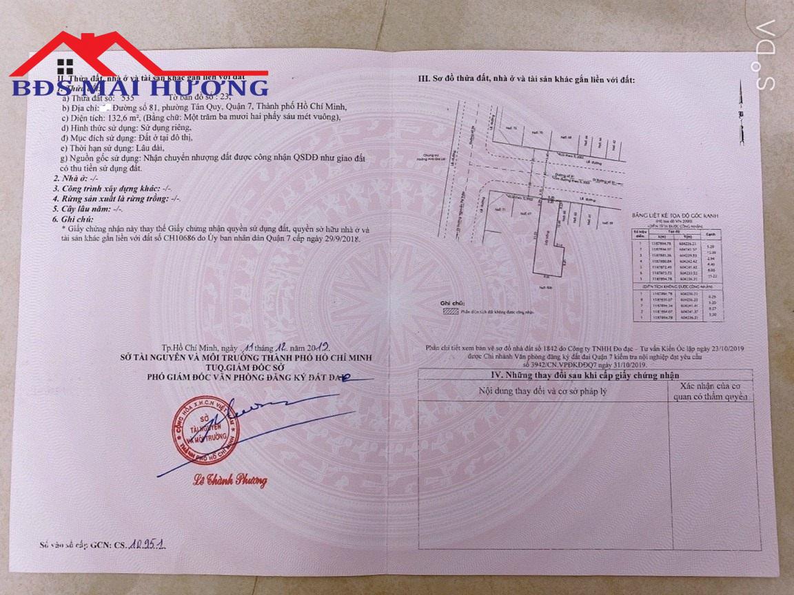 Bán đất mặt tiền đường số 81 phường Tân Quy Quận 7. – Dt 5,2x23m nở hậu L 8 m. cn 133 M2. – Giá 16.5 tỷ