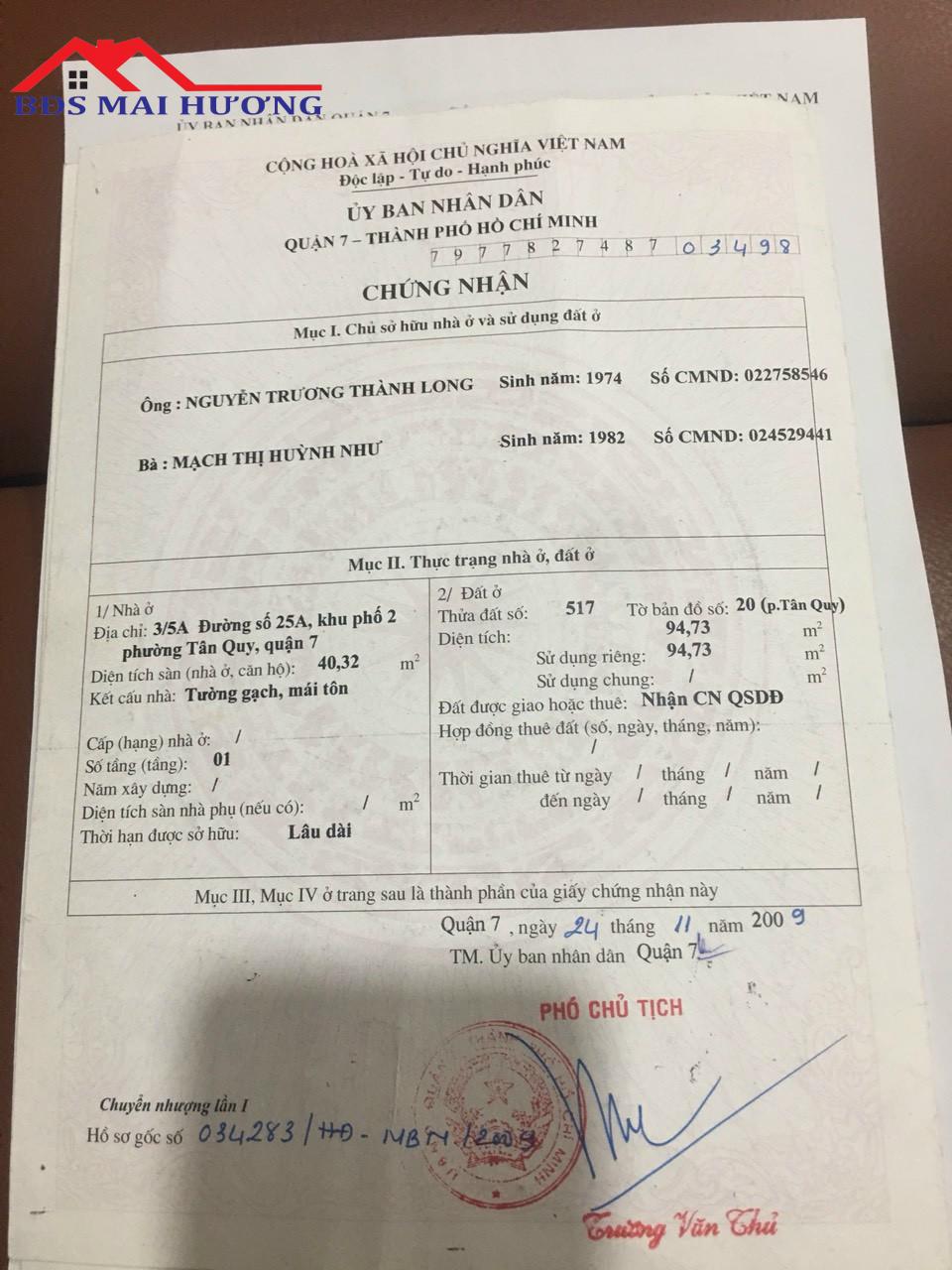 - Địa chỉ: đất mặt tiền đường số 25A p Tân Quy, Quận 7.